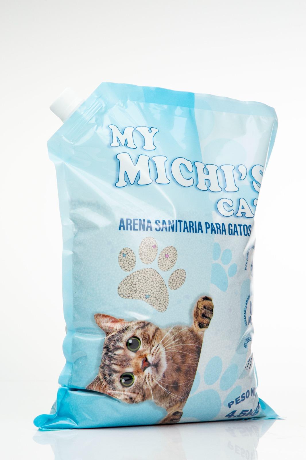 My Michi’s Cat Arena Sanitaria es una arena aglutinante elaborada con bentonita natural que ofrece alta absorción, control de olores y textura suave.
