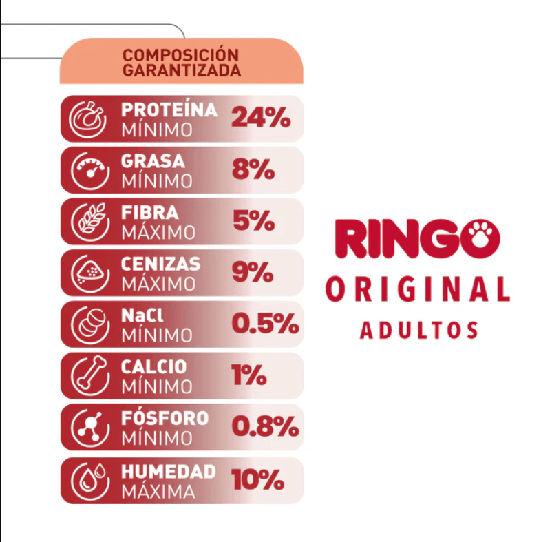 Ringo Original Adultos es un alimento completo y balanceado que aporta energía y vitalidad a perros de todas las razas.